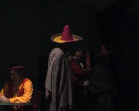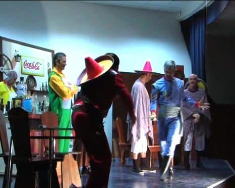 La Commedia "LA ZETA DI ZORRO" è una commedia divisa in tre parti con due diverse ambientazioni: atto primo e terzo all'interno della cantina di Pepe el Cantinero e atto secondo nella piana di santa Esmeralda. La Compagnia dei Papà, per evitare di interrompere lo spettacolo e allestire una scenografia diversa, ha optato per una soluzione a dir poco innovativa in campo teatrale: un film. Alla fine del primo atto gli attori stessi presenti in scena in quel momento posizionano una specie di schermo portatile su quale viene proiettato il filmato di circa 10 minuti che potete vedere a lato.